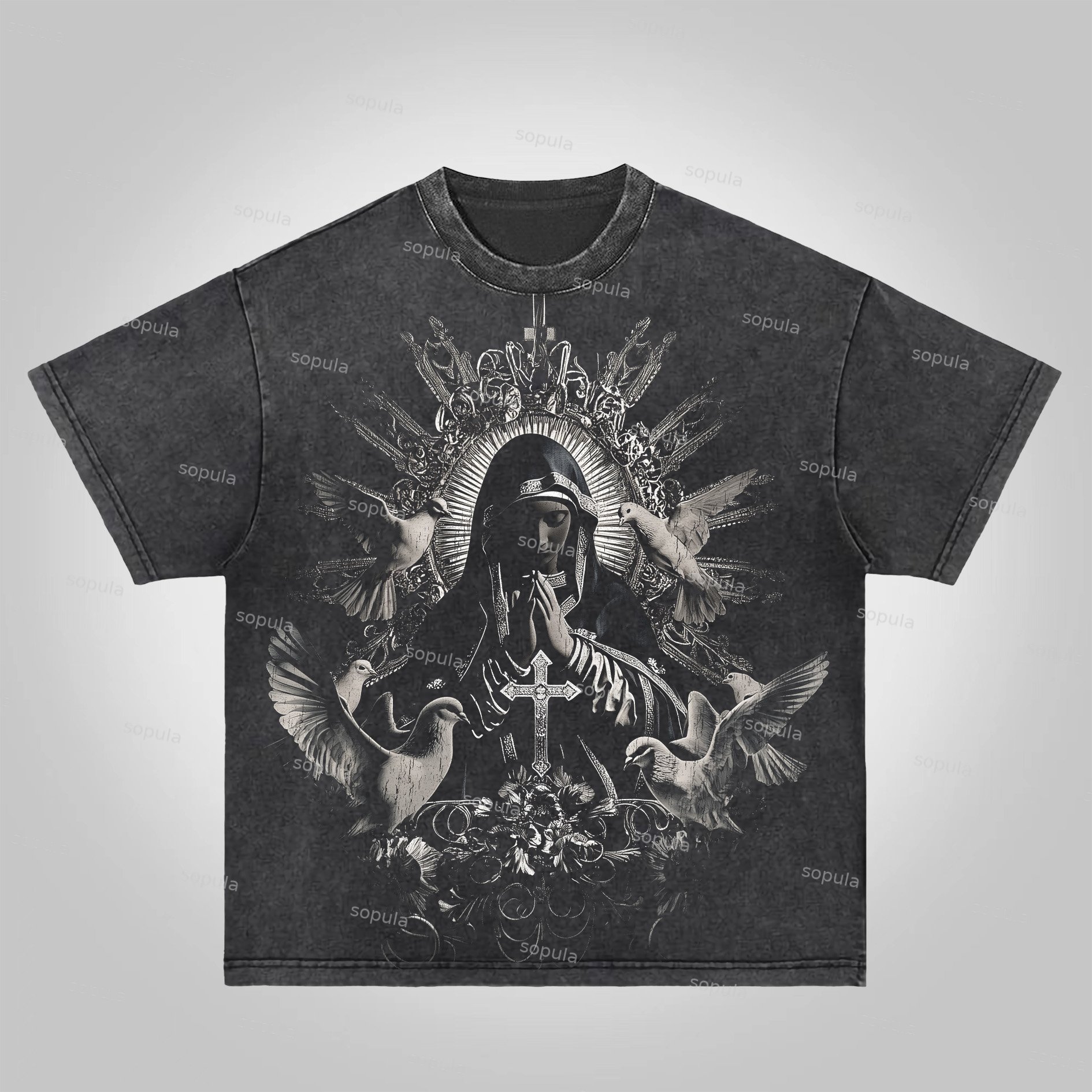 Sopula Virgin Mary Praying Acid Washed T-shirt