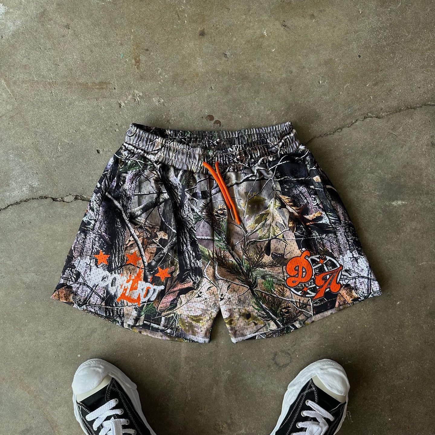 Vintage Stylish Camo Trunk Graphic Casual Street Mesh Shorts