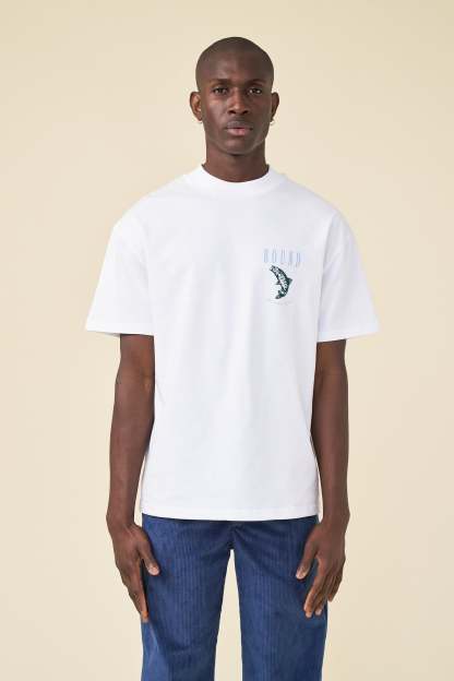SIZING: Our classic boxy oversized fitting t-shirt silhouette, with an extended sleeve length. The model 6,1ft wears a size L.