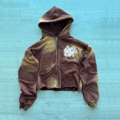 Casual Street Retro Patch Embroidered Zipper Hoodie
