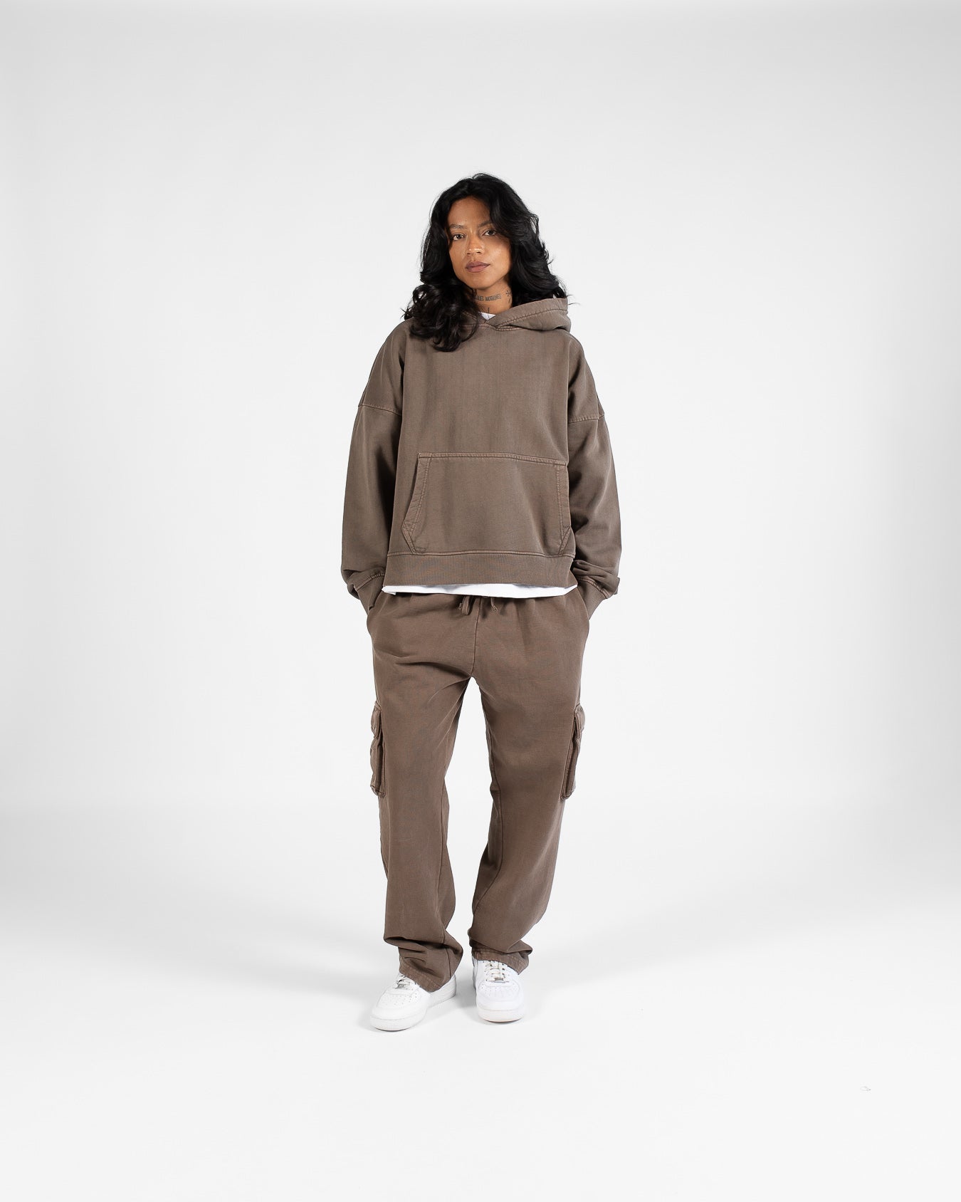 Crafted from a premium 450 GSM 100% cotton french terry fabric, this cropped version of our iconic Drop Shoulder Hoodie provides a versatile layering piece that allows for a more relaxed fit and better proportions when creating outfits. A specialized mineral stone wash has been used to obtain a vintage look, ensuring each piece is one-of-a-kind.