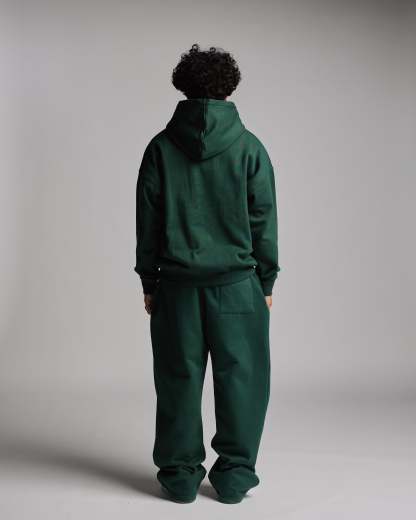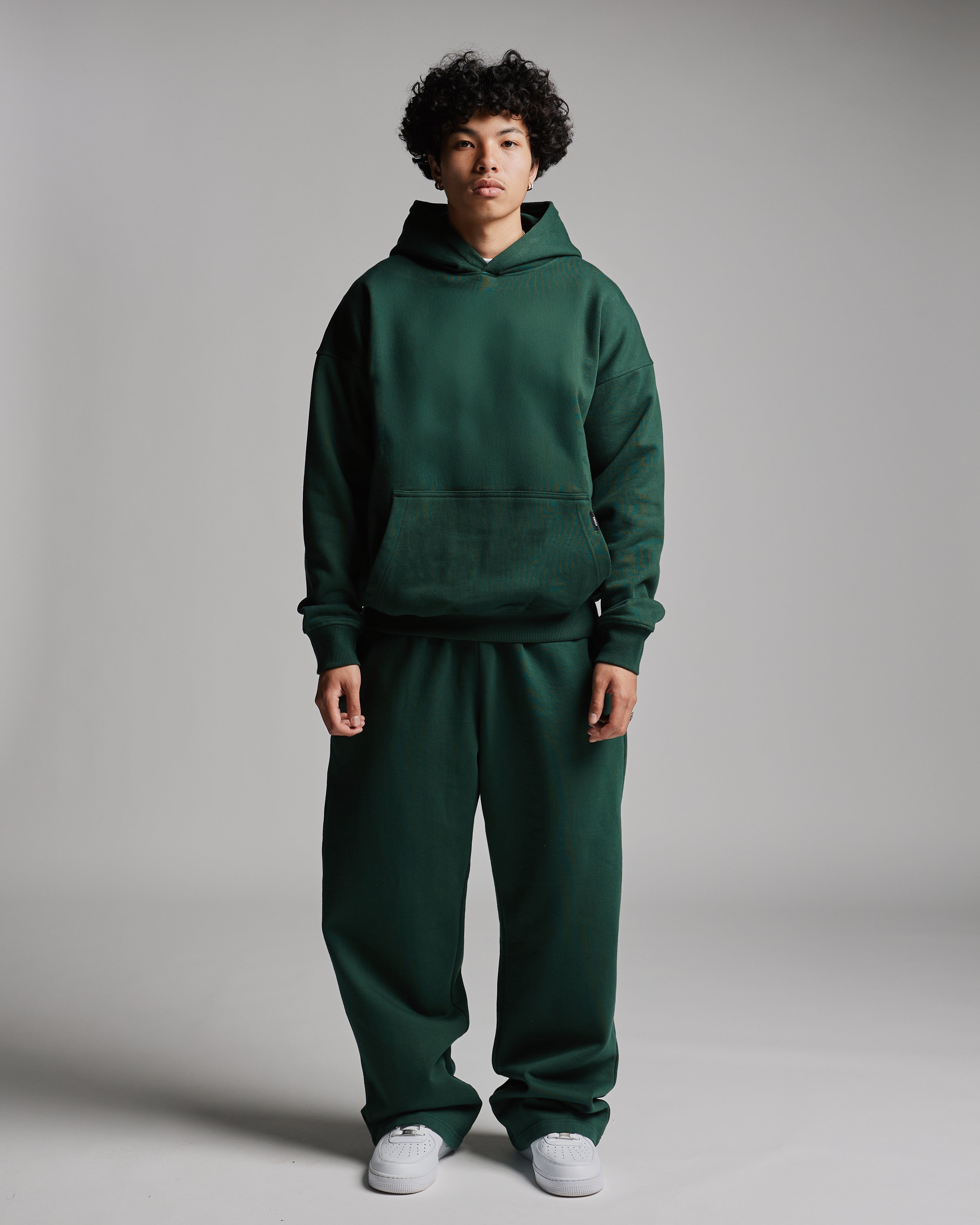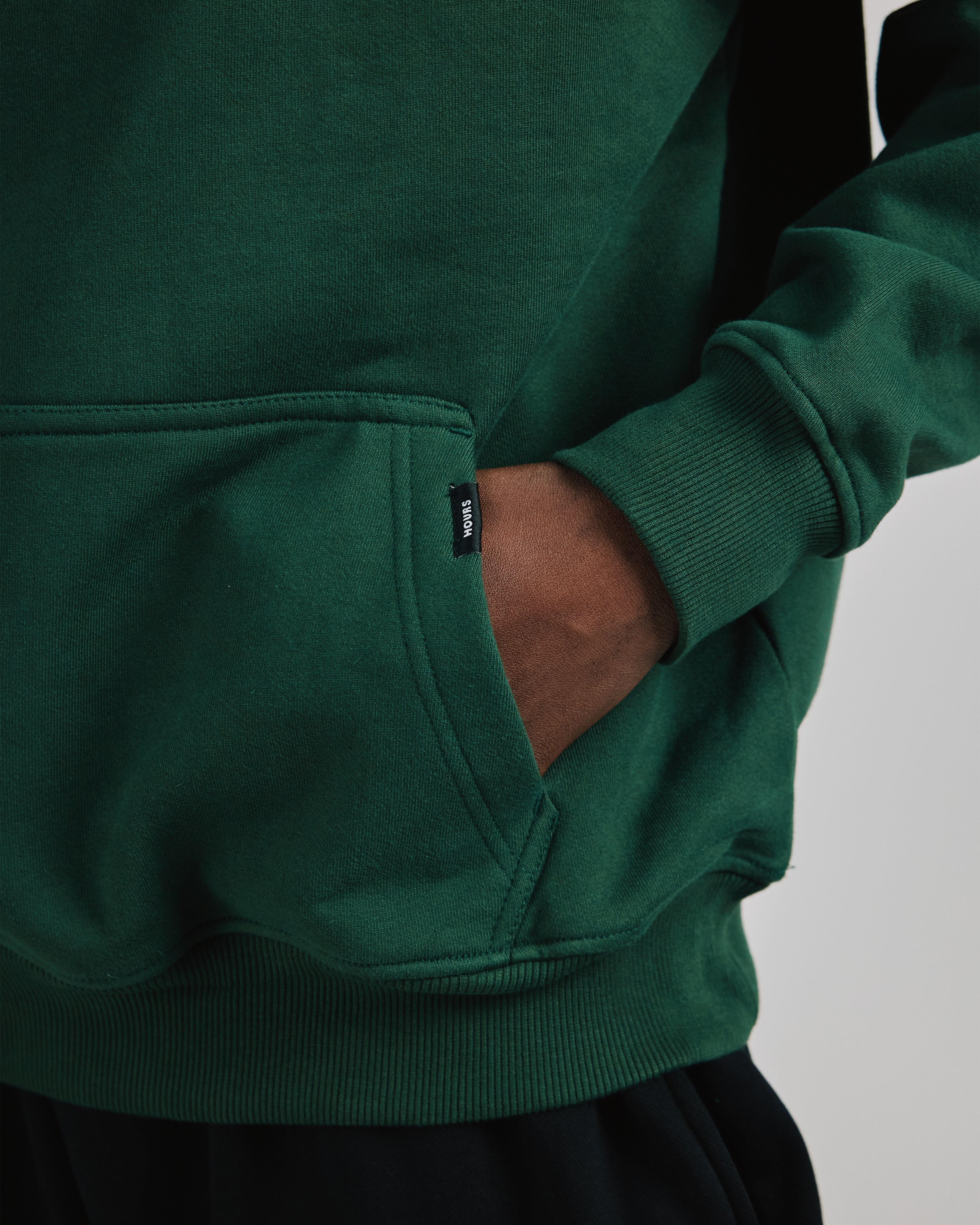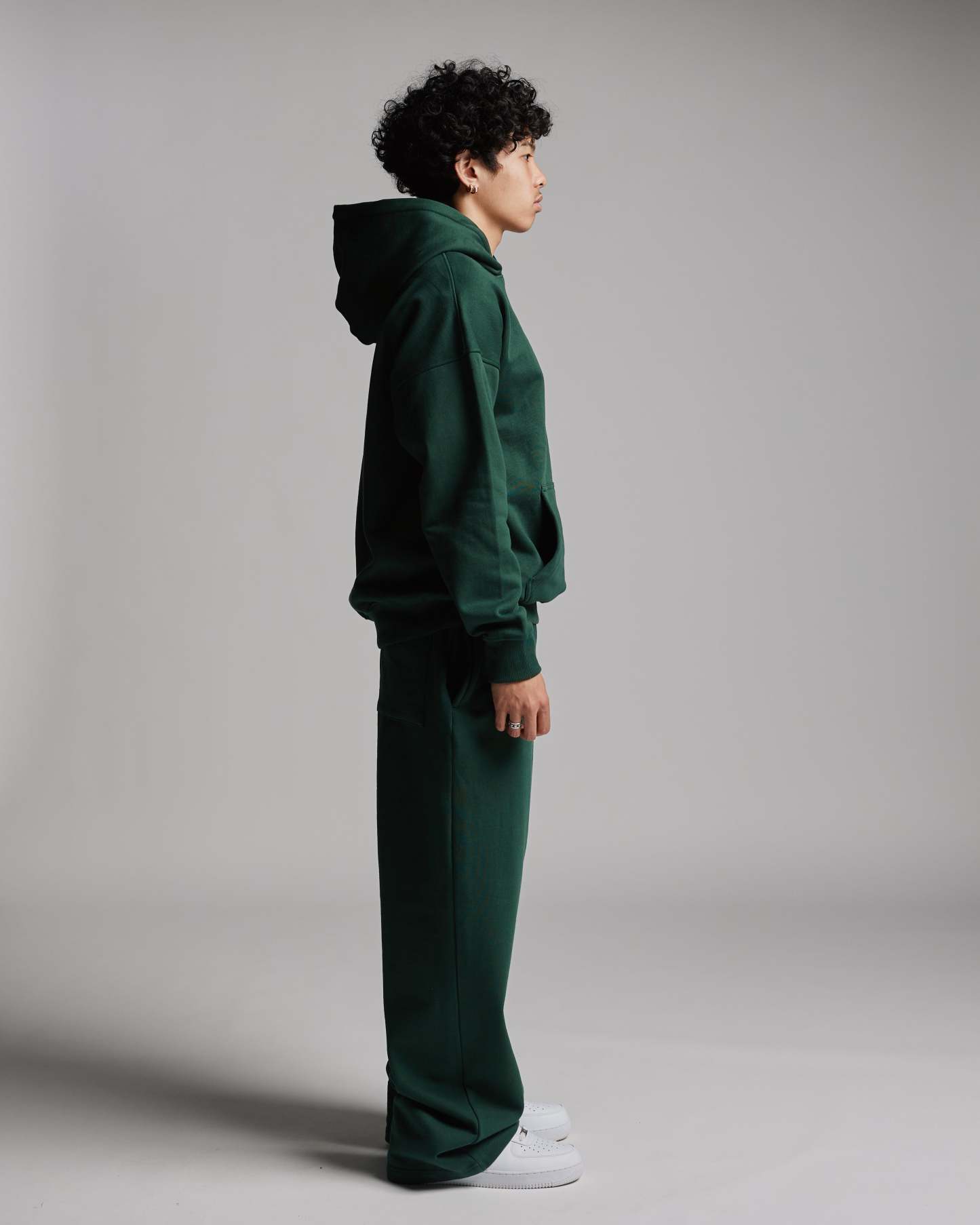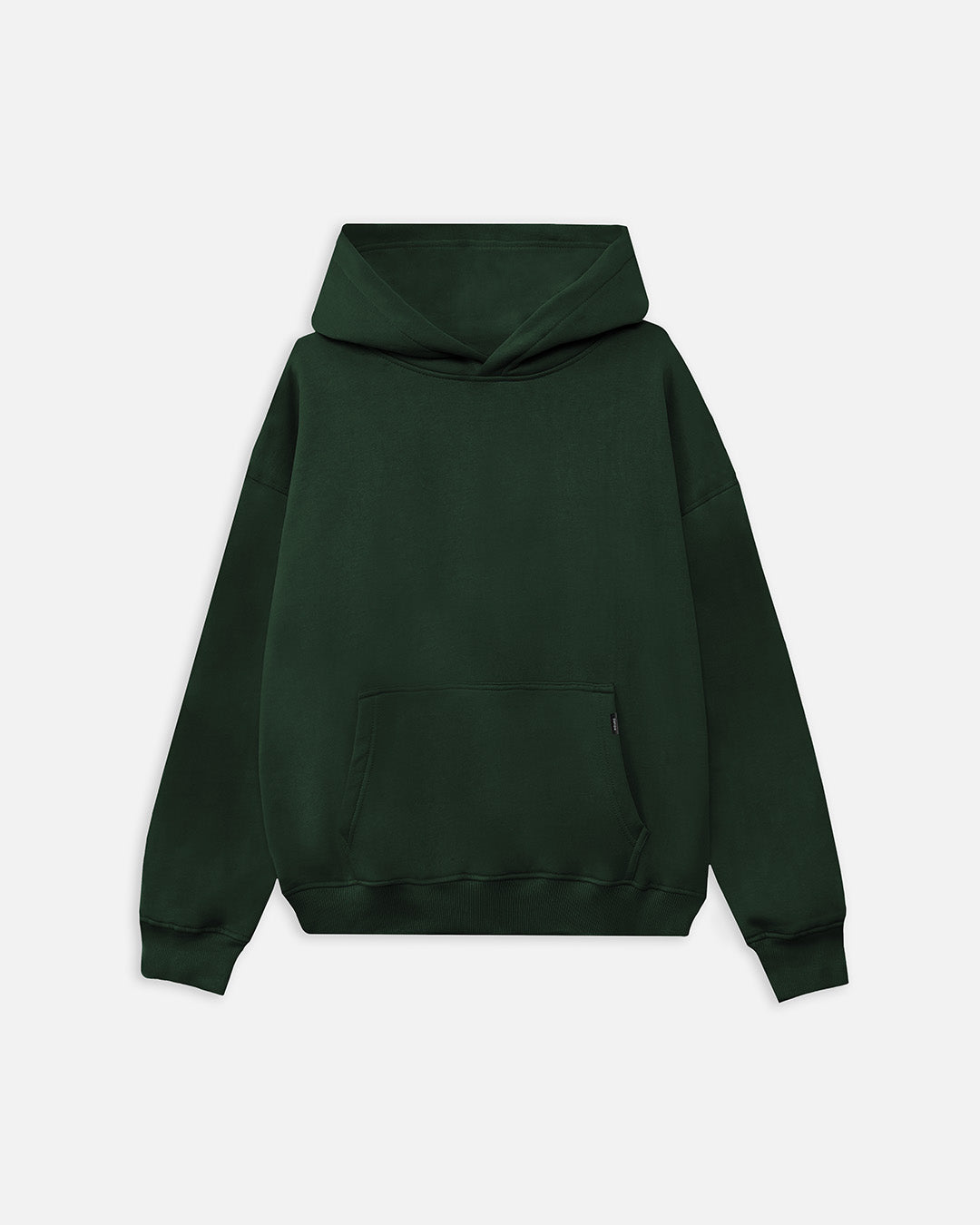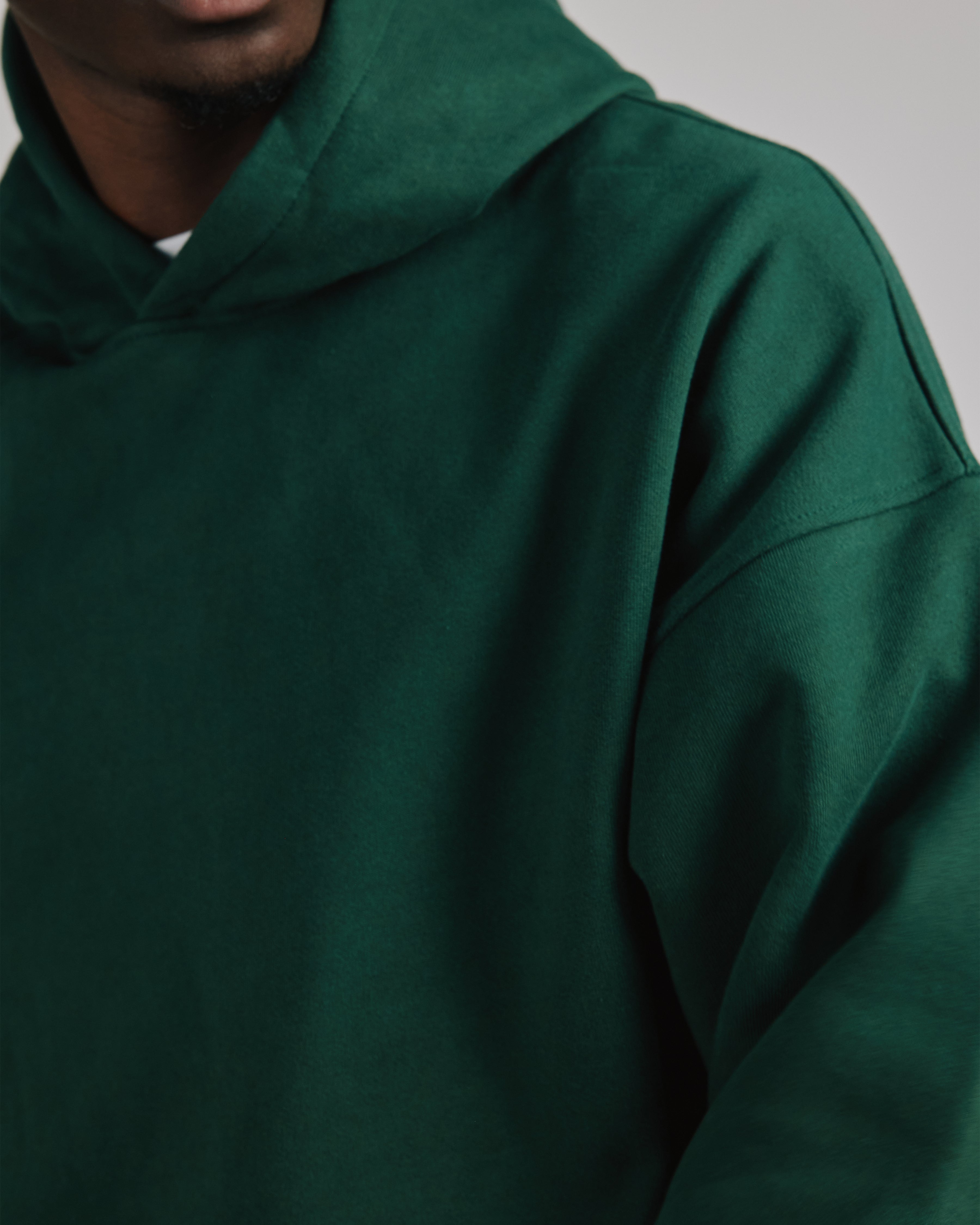 Made in our new upgraded 480 GSM cotton fabric, this forest green hoodie features a street inspired look with drop shoulders.
