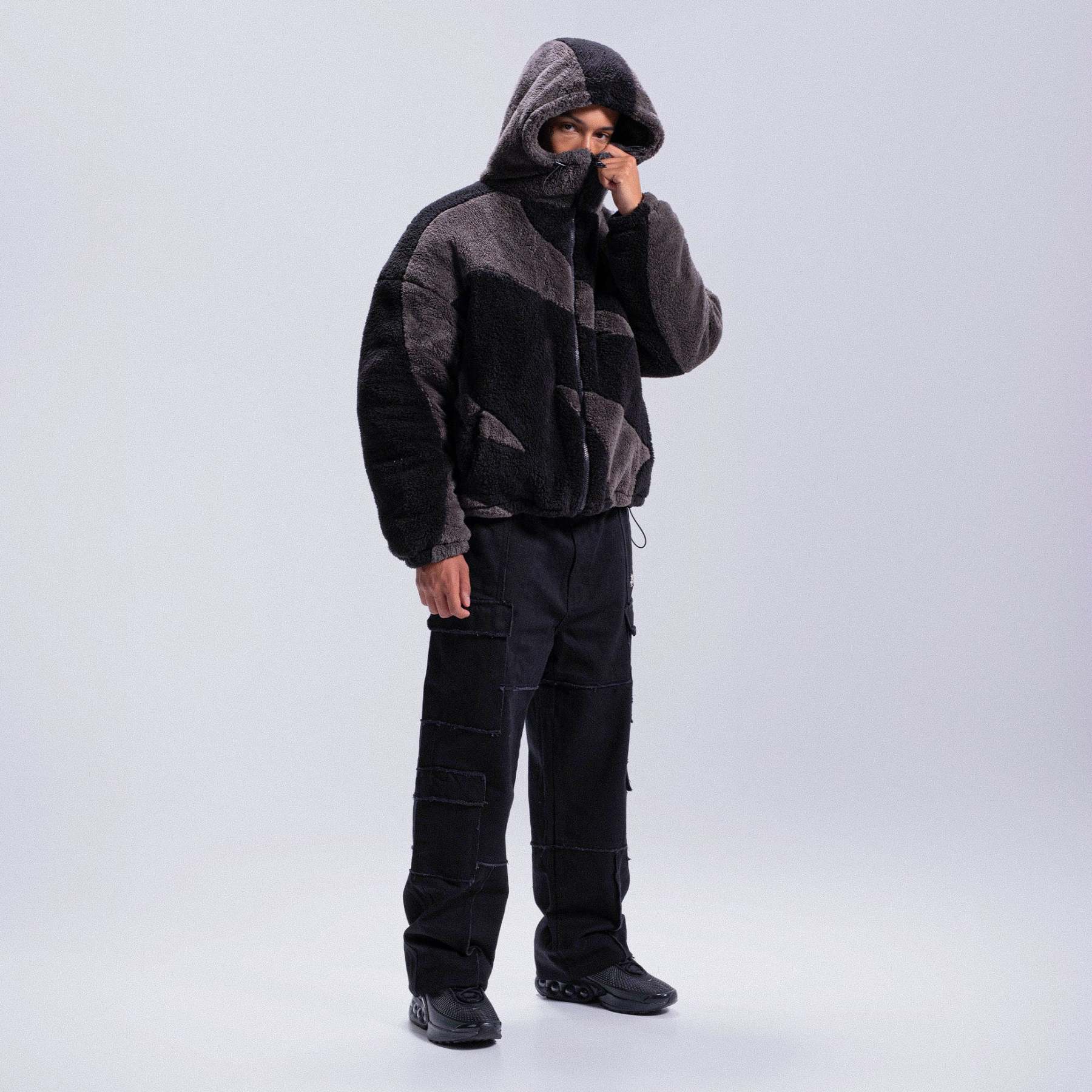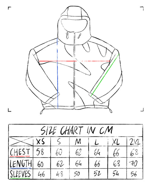 - Adjustable waist and hood.