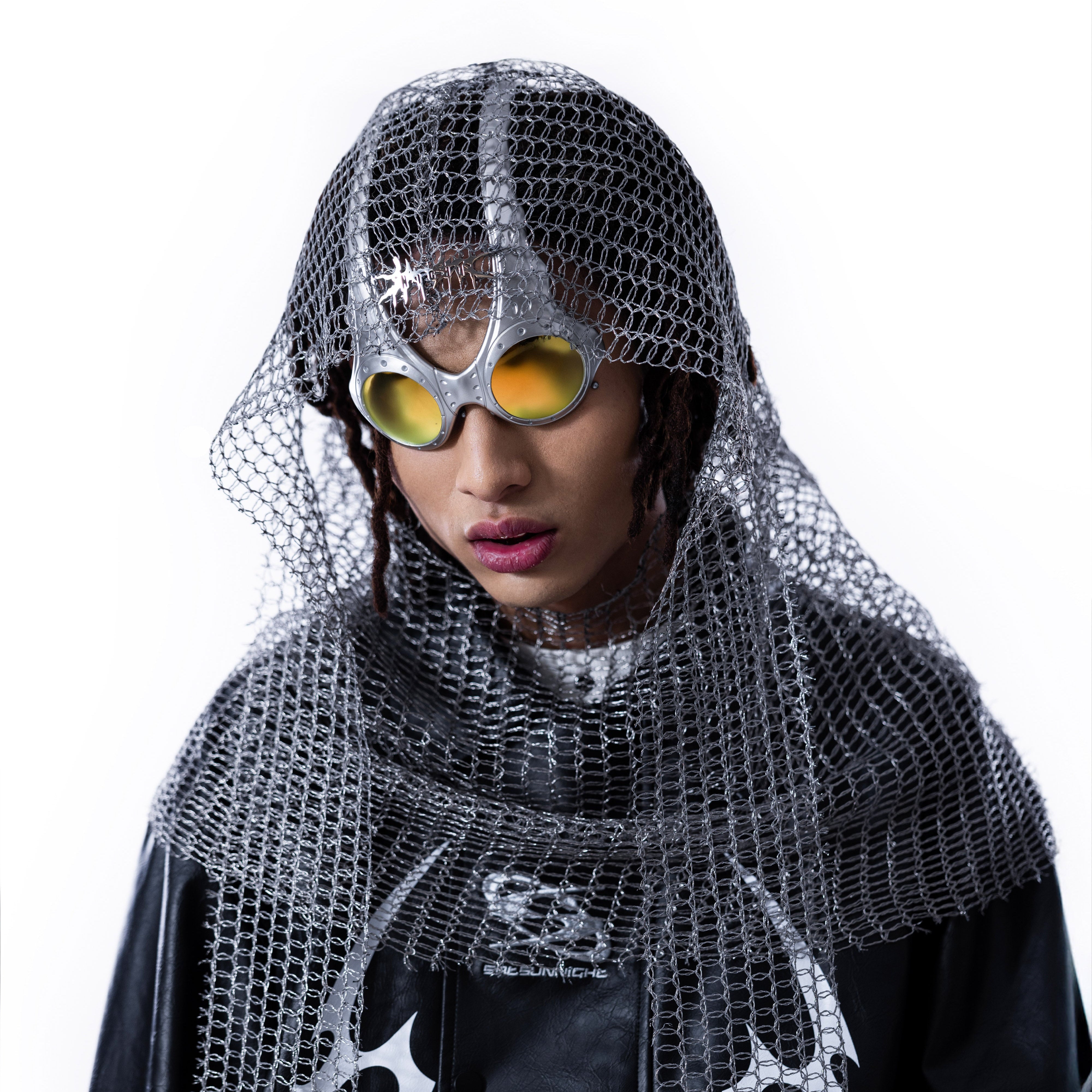 The design features a lightweight and easy-to-use silver perforated fabric that imitates the texture of metal.