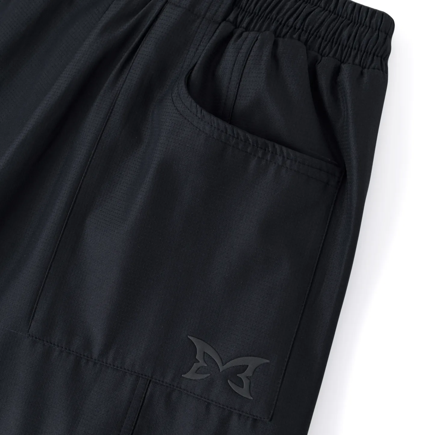 The Mertra Tech Joggers (Black) deliver a clean fusion of comfort, mobility, and technical streetwear design. Built with a lightweight poly tech shell and breathable mesh lining, these joggers provide smooth airflow and durability for everyday movement Reflective high-frequency logos add sharp visibility, while the asymmetrical paneling gives a modern edge to the silhouette. The wide-leg, relaxed structure ensures a premium baggy fit that stays comfortable all day. An interior waist drawcord and ankle toggles allow full control over shaping and style. A signature rear pocket completes this versatile essential.