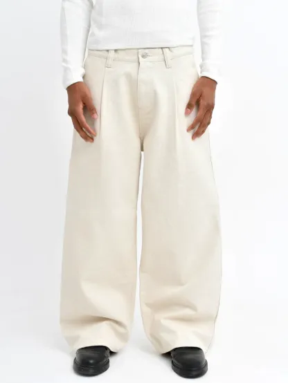 To fully showcase the fabric’s unique properties, the pants feature a wide-leg silhouette with front pleats, creating a design that is both structured and easy to move in, with a naturally dimensional drape.