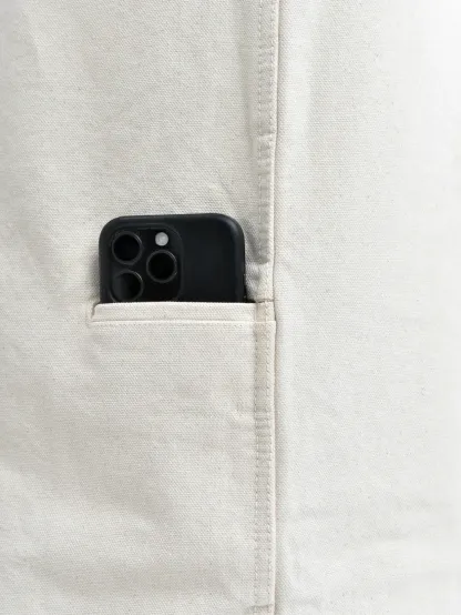 Crafted from an 8-gauge heavyweight duck canvas equivalent to approximately 18oz. Woven at high density, the canvas offers exceptional durability and a firm, structured hand feel, while gradually softening and conforming to the body with wear, developing depth and character over time.