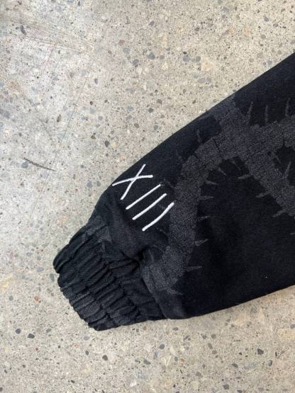 Heavyweight Denim Jacket with laser-printed designs on the front and back and embroidery design on the sleeve. This Jacket is made of 100% denim. Soft and comfortable, warm and breathable.