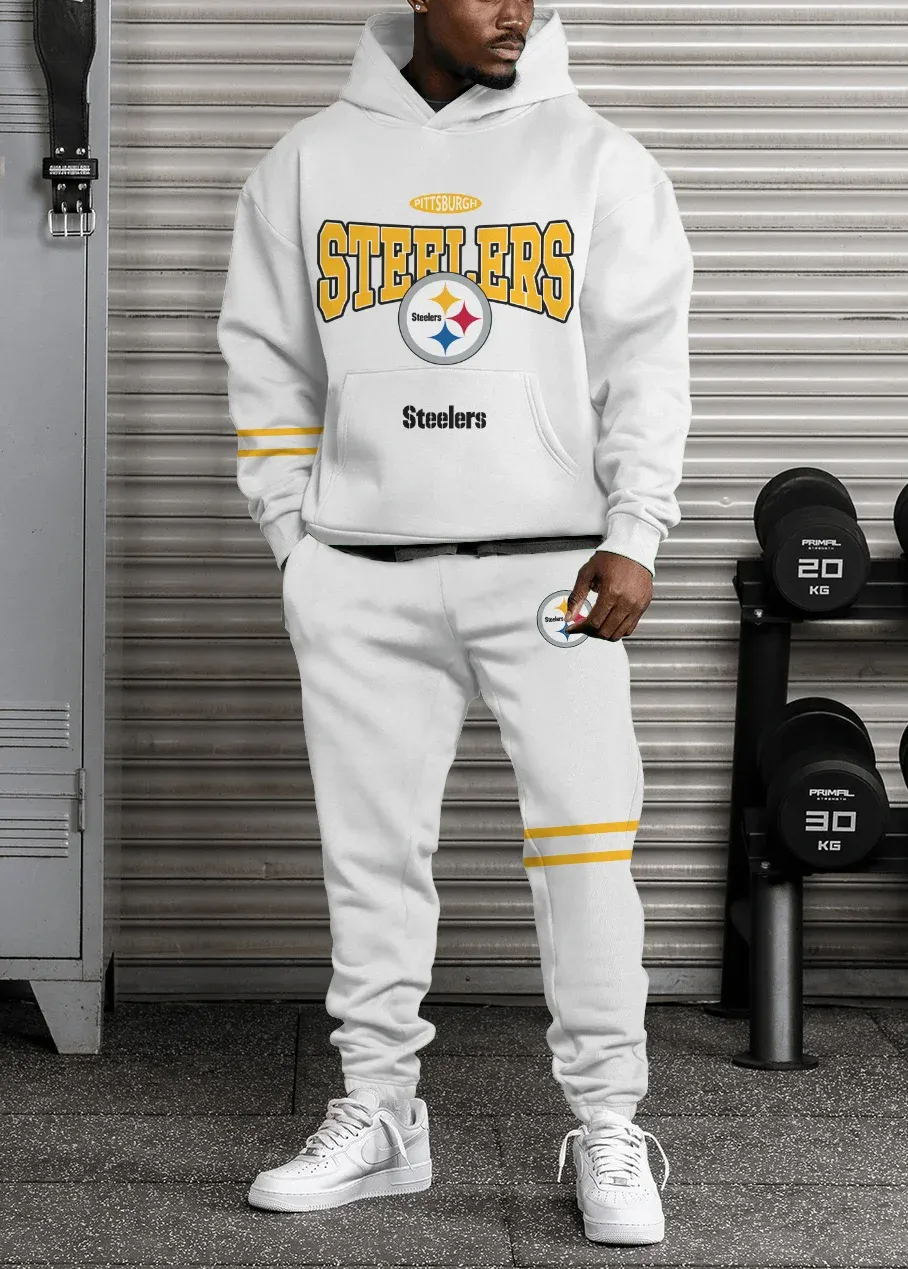 Elevate your casual sportswear game with this stylish Casual Hoodie Jogging Sweatpants Tracksuit Set featuring logos of teams. This set is the perfect blend of comfort, style, and team spirit, offering a coordinated look that is both trendy and fan-centric. The hoodie and sweatpants are designed for all-day wear, whether you're lounging at home, running errands, or hitting the gym. The team logos add a touch of personalization and pride to the set, making it a must-have for any football enthusiast. Stand out from the crowd and show off your team allegiance with this versatile tracksuit set that is sure to keep you comfortable and fashionable while representing your favorite NFL team. Gear up in style and make a statement with this Casual Hoodie Jogging Sweatpants Tracksuit Set that combines athletic vibes with fan pride.